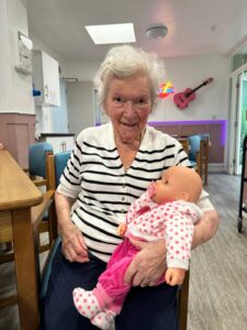 The presence of a doll or a pet can significantly enhance the well-being of our residents, especially those who are withdrawn, restless, distressed, or anxious. These companions offer a sense of comfort and security, fostering a more positive and communicative environment.
